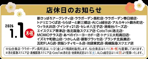 ※年始の営業につきまして、詳しくは各店舗ホームページをご確認ください。 |