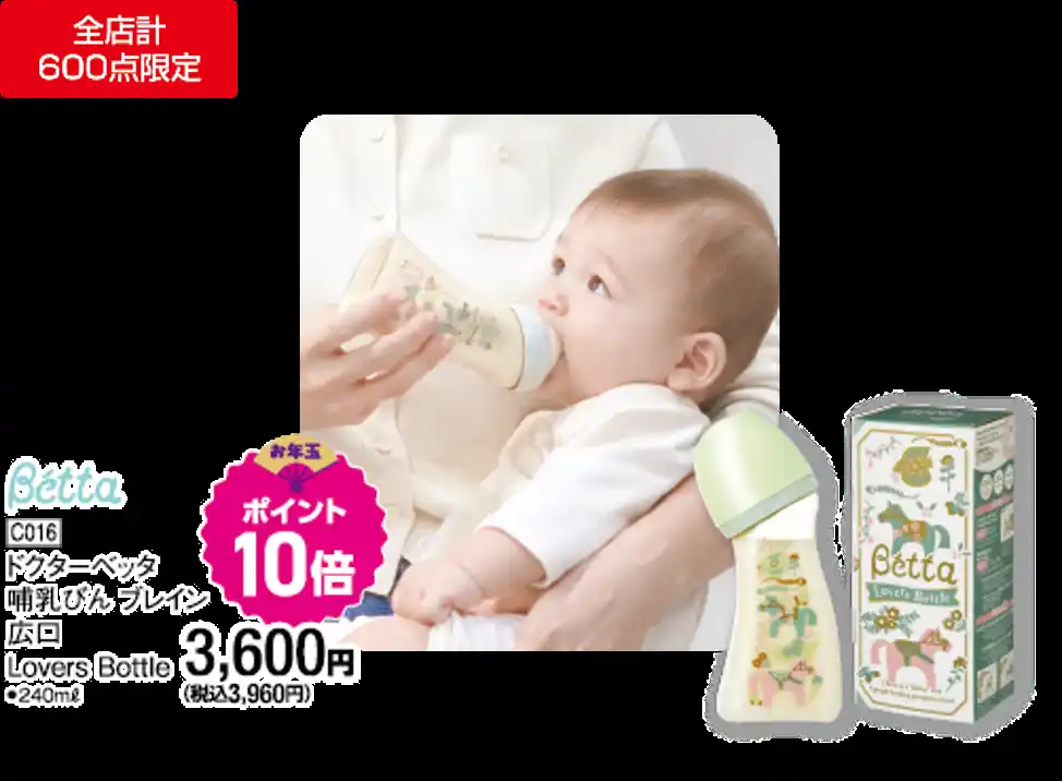 新春限定プレゼントや、ベビーカー・抱っこ紐・ふとんセットなどの出産準備アイテム、楽しく遊べるおもちゃなどを新春特別価格でご用意しました。午(うま)年にちなんだ干支柄おしりふきも取り揃え、皆さまの子育てをサポートします。 |