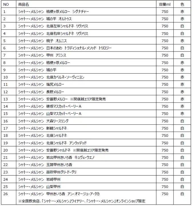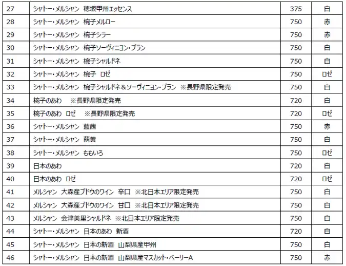 ※対象商品には、上記以外にもワイナリー・EC限定販売品なども含みます。 |