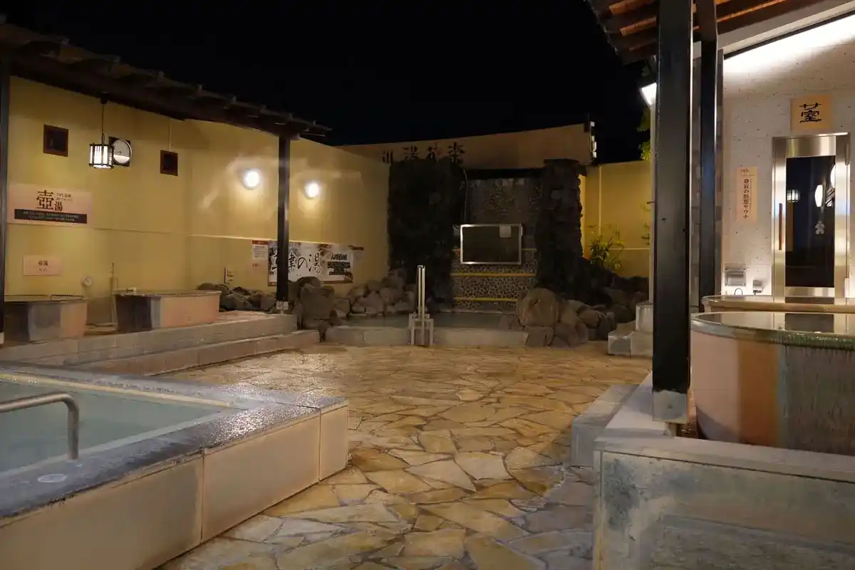 炭酸泉や全国の名湯を再現した7種類のお風呂を楽しめる「秦野湯花楽」 |
