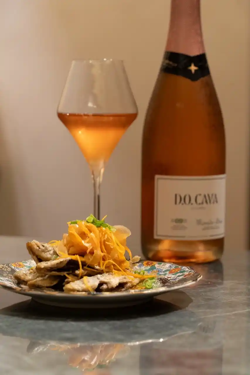 高級料理はもちろん、日常の料理においてもその魅力を存分に発揮する一本です。 そして頂点に位置するのが、カバ・デ・グアルダ・スーペリオール・パラヘ・カリフィカード。 単一畑のブドウのみを使用し、36か月以上の熟成を経て造られるこのカバは、 テロワールの究極的な表現であり、カバ原産地呼称(DO)の卓越性を体現する存在です。長期熟成を含む多彩なスタイルを持つカバだからこそ、出汁や砂糖、酢を使用した日本食とも相性が良く、今回はその魅力を体感いただける3つのペアリングメニューをご用意しました。 |
