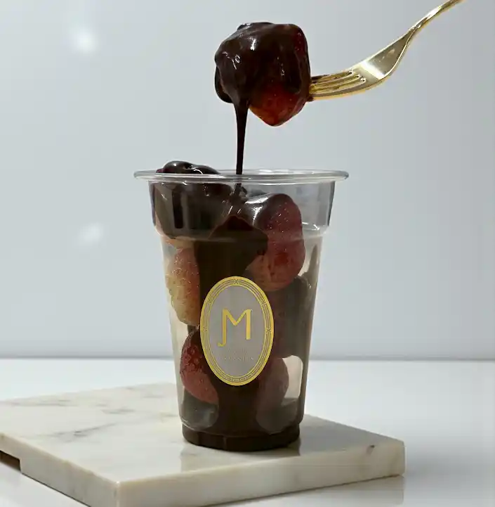 香り高いチョコレートソースと甘酸っぱい苺のマリアージュ。 |