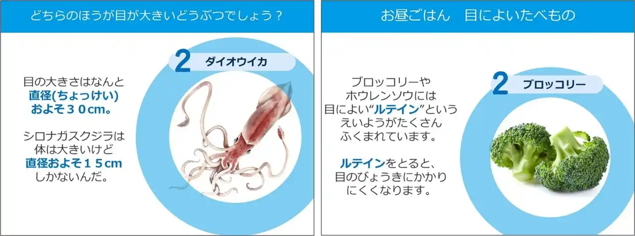 児童たちに対して単に情報を伝えるだけでなく、クイズを通じて楽しむことで、目の健康に関する情報を得ることを目的としています。 |