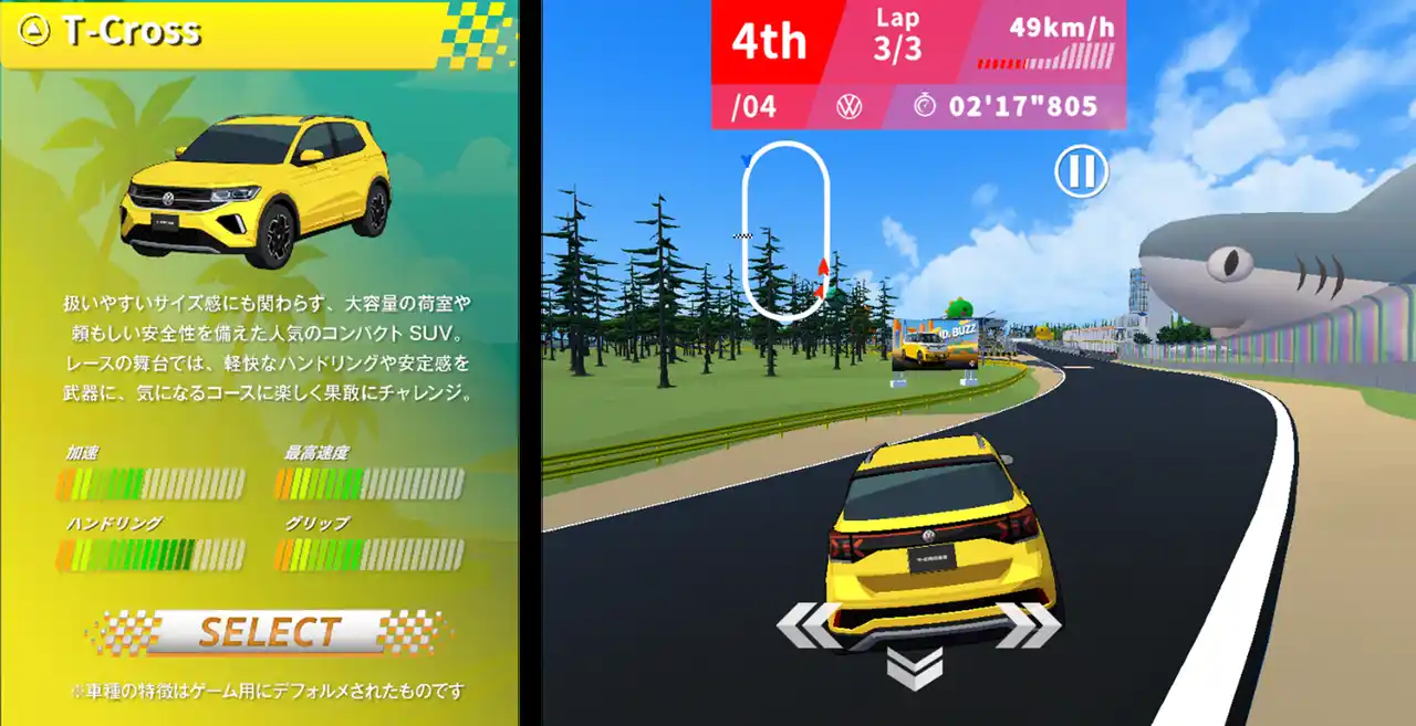 ぜひ、本ゲームを通じて、自分のライフスタイルに合ったフォルクスワーゲン車を見つけるきっかけとしてご活用ください。 |
