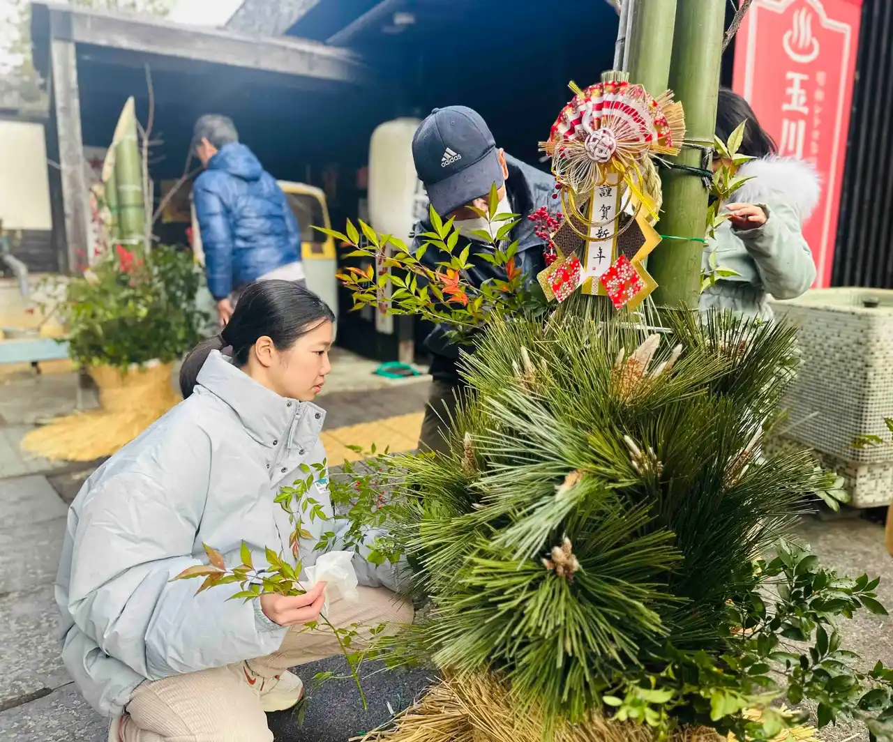 お正月に家の門の前に立てる「門松」づくりを体験しませんか。その歴史や、飾る意味などを玉川温泉のベテランスタッフが教えながら一緒に作ります。でき上がった門松は、2026年1月7日まで玉川温泉の玄関に飾ります。新年が良い年になるように願いを込めながら、お正月を迎える準備ができればと思います。 |
