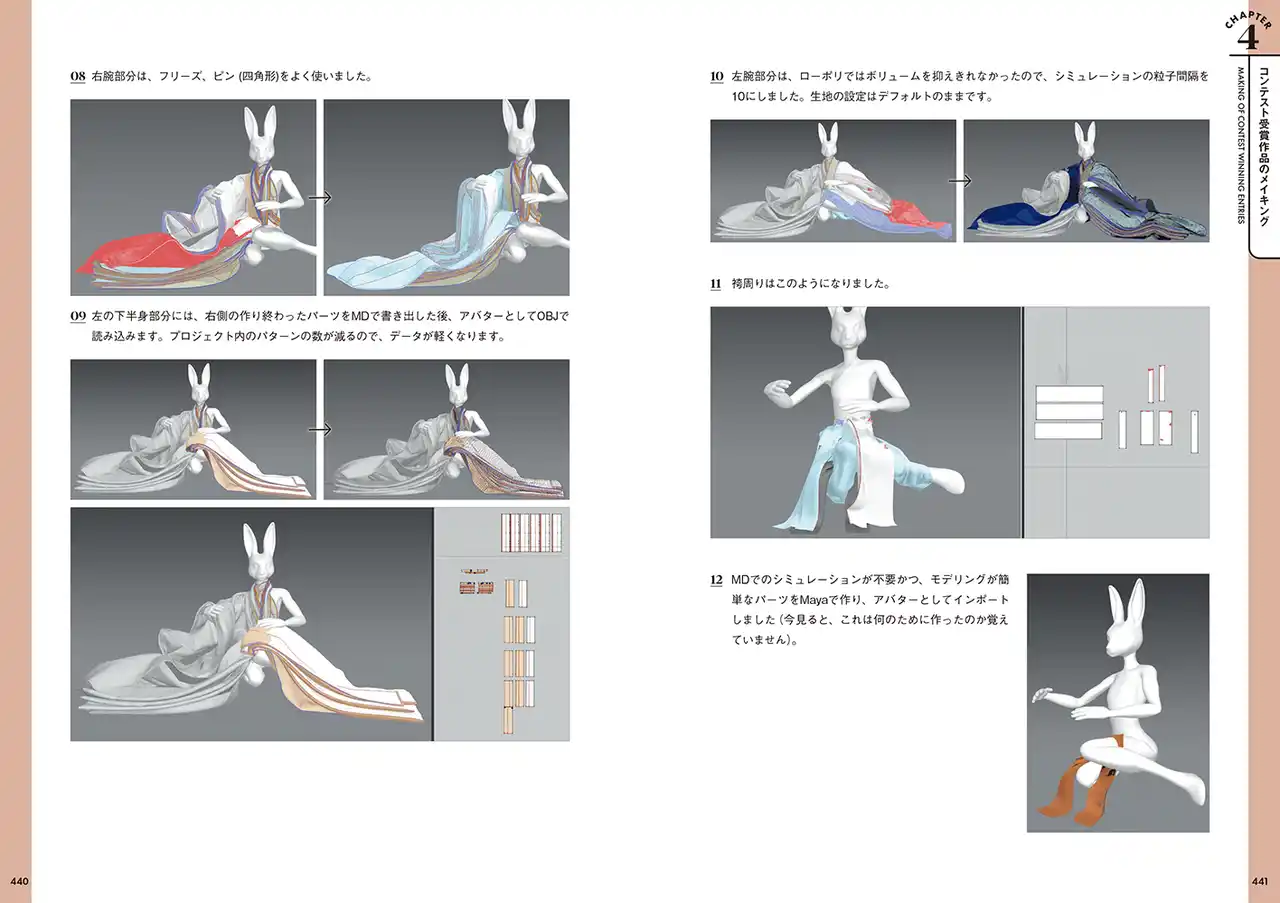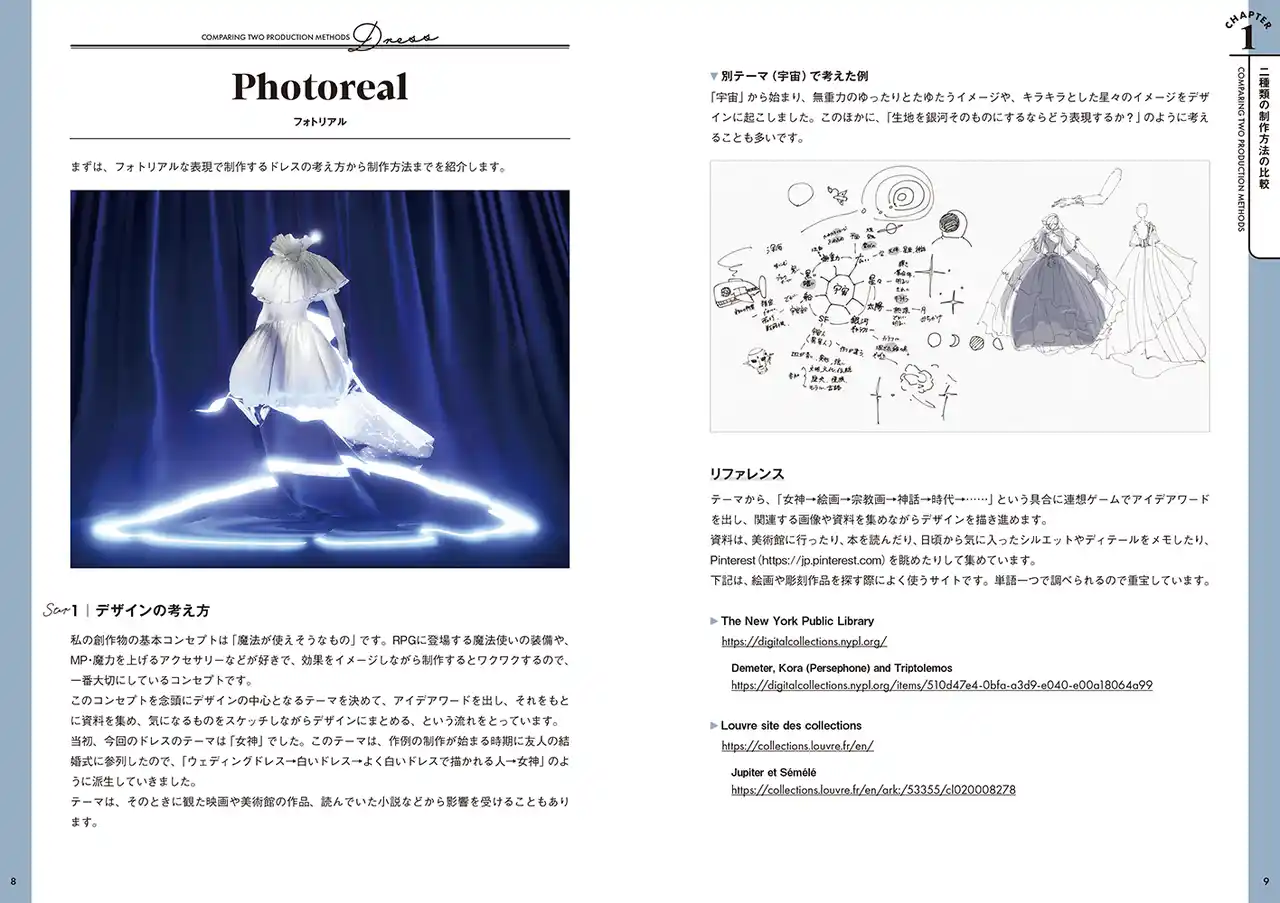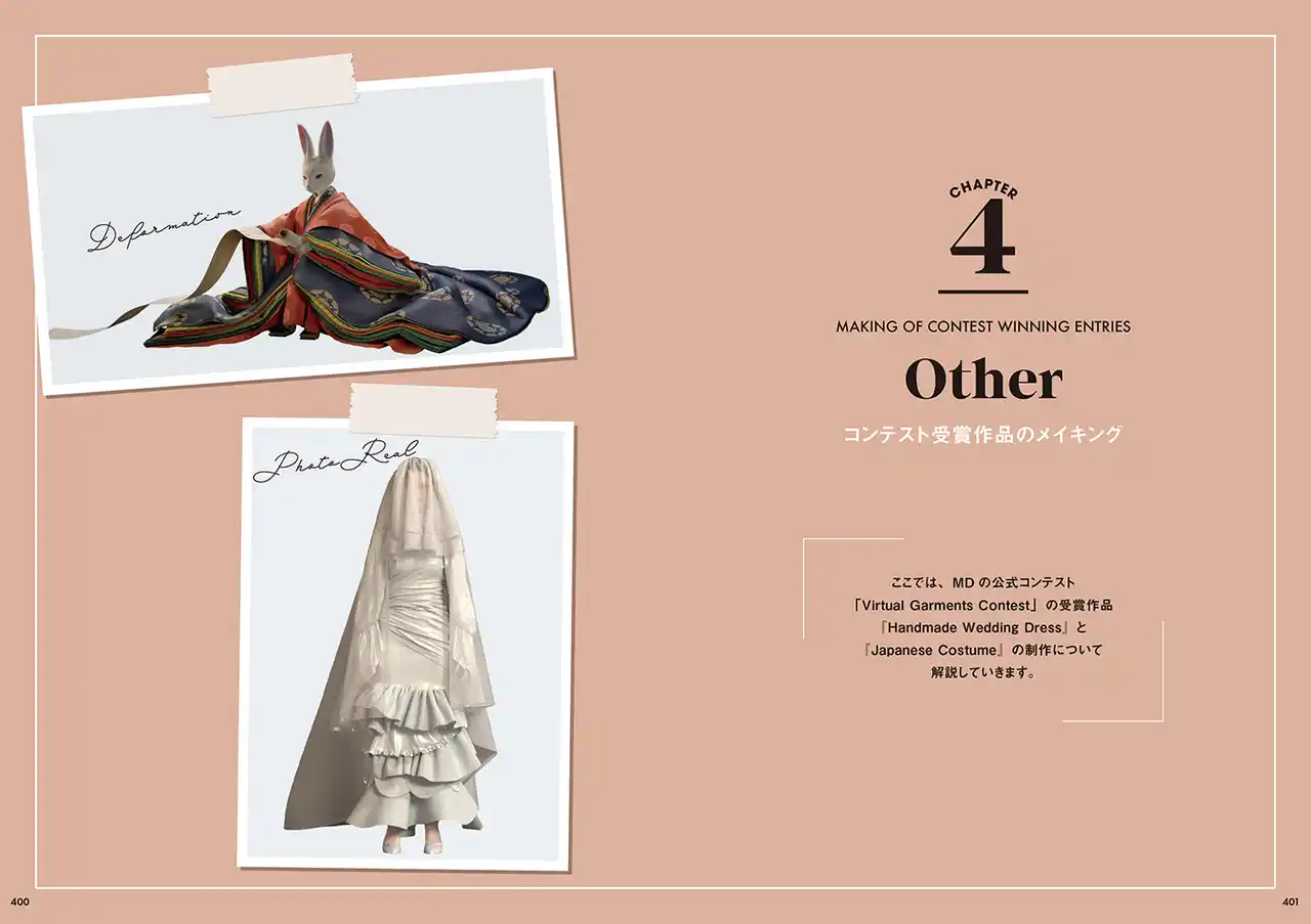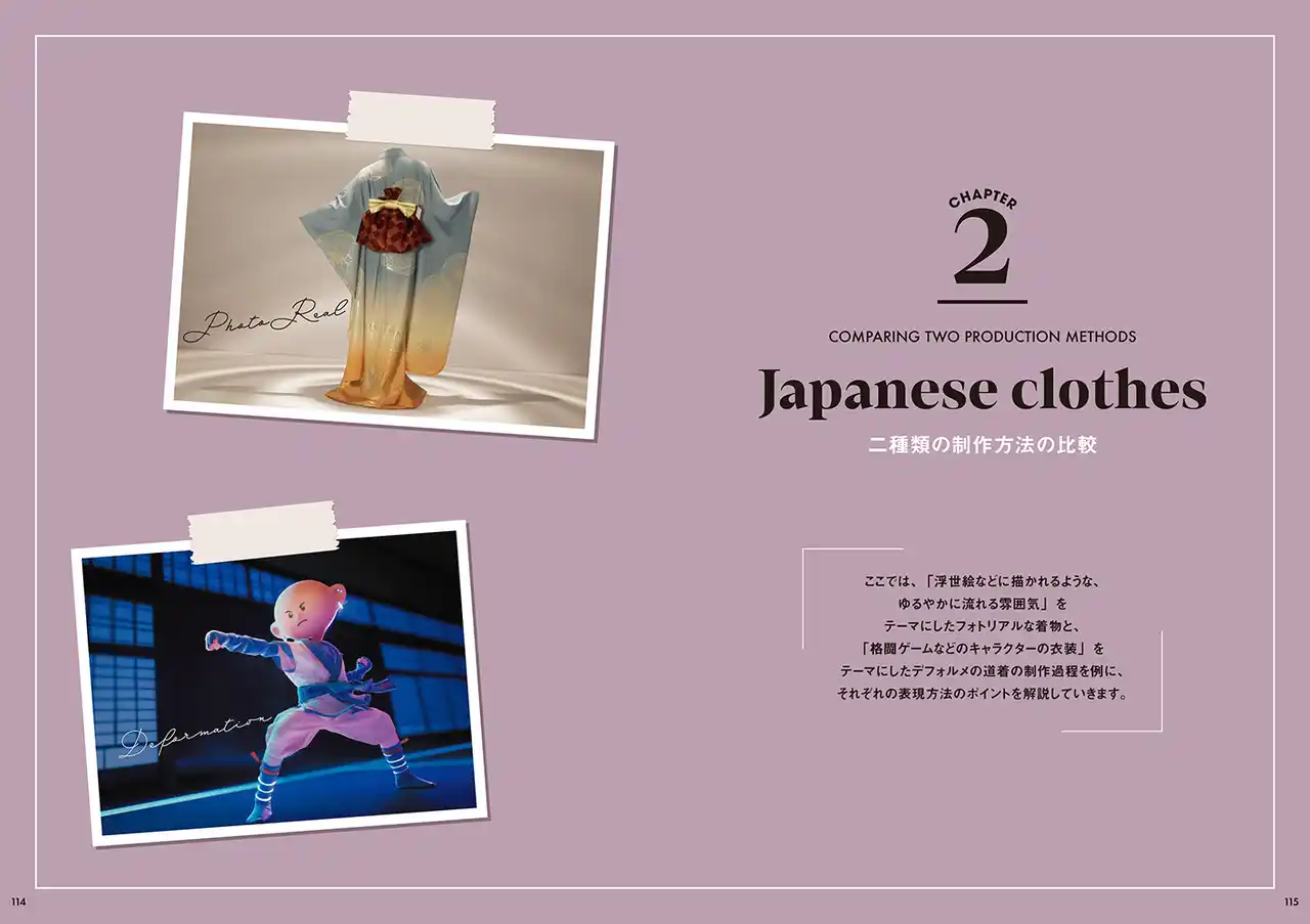 本書では、Marvelous Designerを活用し、CGならではの自由度や高いビジュアル表現を活かした衣装デザインの考え方から、制作手法、魅せ方までを丁寧に解説します。 |