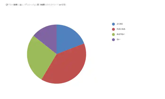 「冬の湘南に住んでよかったと思う瞬間はありますか?」という設問では、「よくある」「たまにある」を合わせて 58.5% に達しました。 |