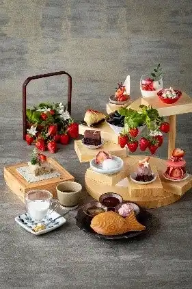 旬の苺をふんだんに使用し、職人が丹精こめて作り上げたアフタヌーンティー。苺を丸ごと一粒使用した「苺のひとくち大福」をはじめ、「苺羊羹とショコラテリーヌ」や「苺と白玉のパンナコッタ」など、苺をしっかりと感じられる甘味、また「苺とせり胡桃の白和」など和食店ならではのセイボリーも魅力です。 |