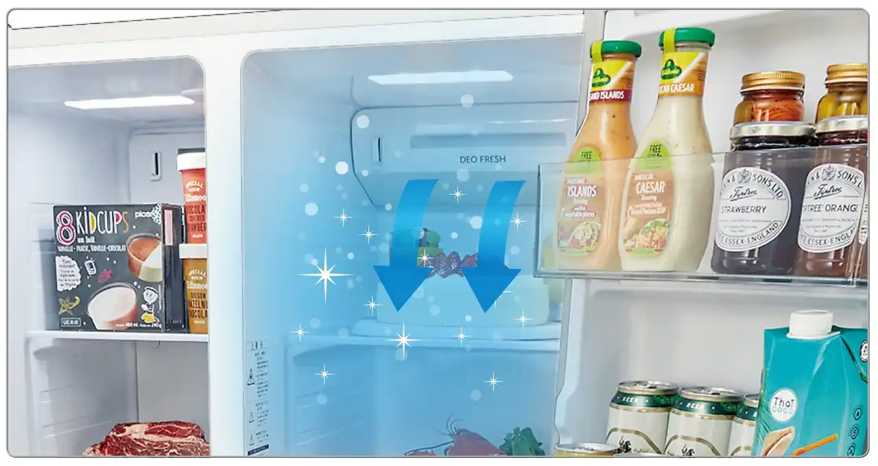 冷蔵室は283L、冷凍室は192Lの大容量。上段は高さ調整ができる強化処理ガラス棚、下段は2段ボックスになっているため整理もお手入れもラクラクです。サイドポケットにはさまざまなサイズ・形状の食品を見やすく収納可能。さらに、冷蔵室には除菌・脱臭(※1)効果のある「DEO FRESHフィルター」搭載で、庫内を清潔に保つため、匂いの移りやすい食材も安心して保存できます。 |
