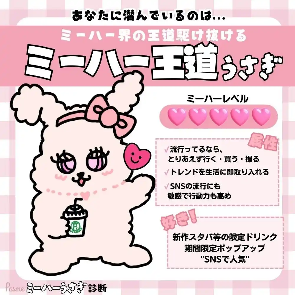 【fasmeミーハーうさぎ診断(ハート)】あなたは「ミーハー王道うさぎタイプ」 |