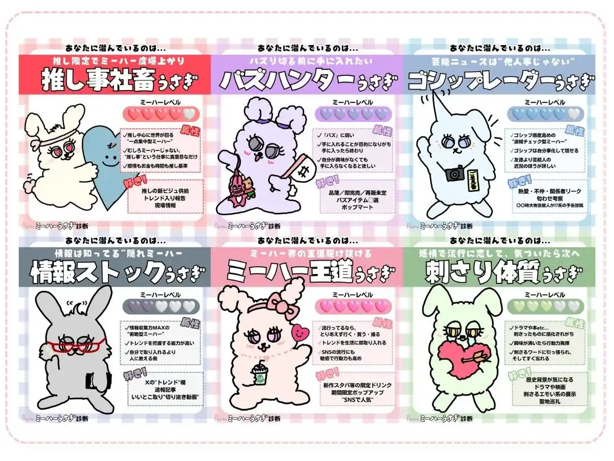 「fasmeミーハーうさぎ診断(ハート)」診断結果全6タイプ |