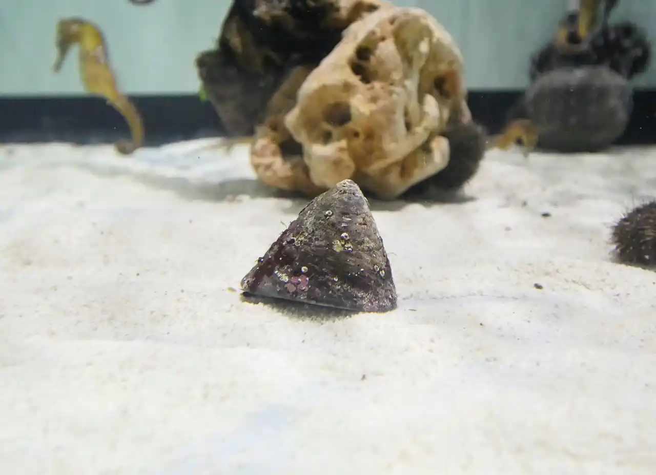 展示生物は、来年の干支・午(ウマ)にちなむ名前がついた海の生き物で、馬のような細長い顔つきをして漢字で「銀馬」とも書くギマやタツノオトシゴの仲間のクロウミウマ「黒海馬」、貝殻の形が馬の蹄(ひづめ)に似ている巻貝の仲間のバテイラなどの計5種50点です。海のウマたちは、トロピカルアイランド内の特設水槽で展示を行います。 |