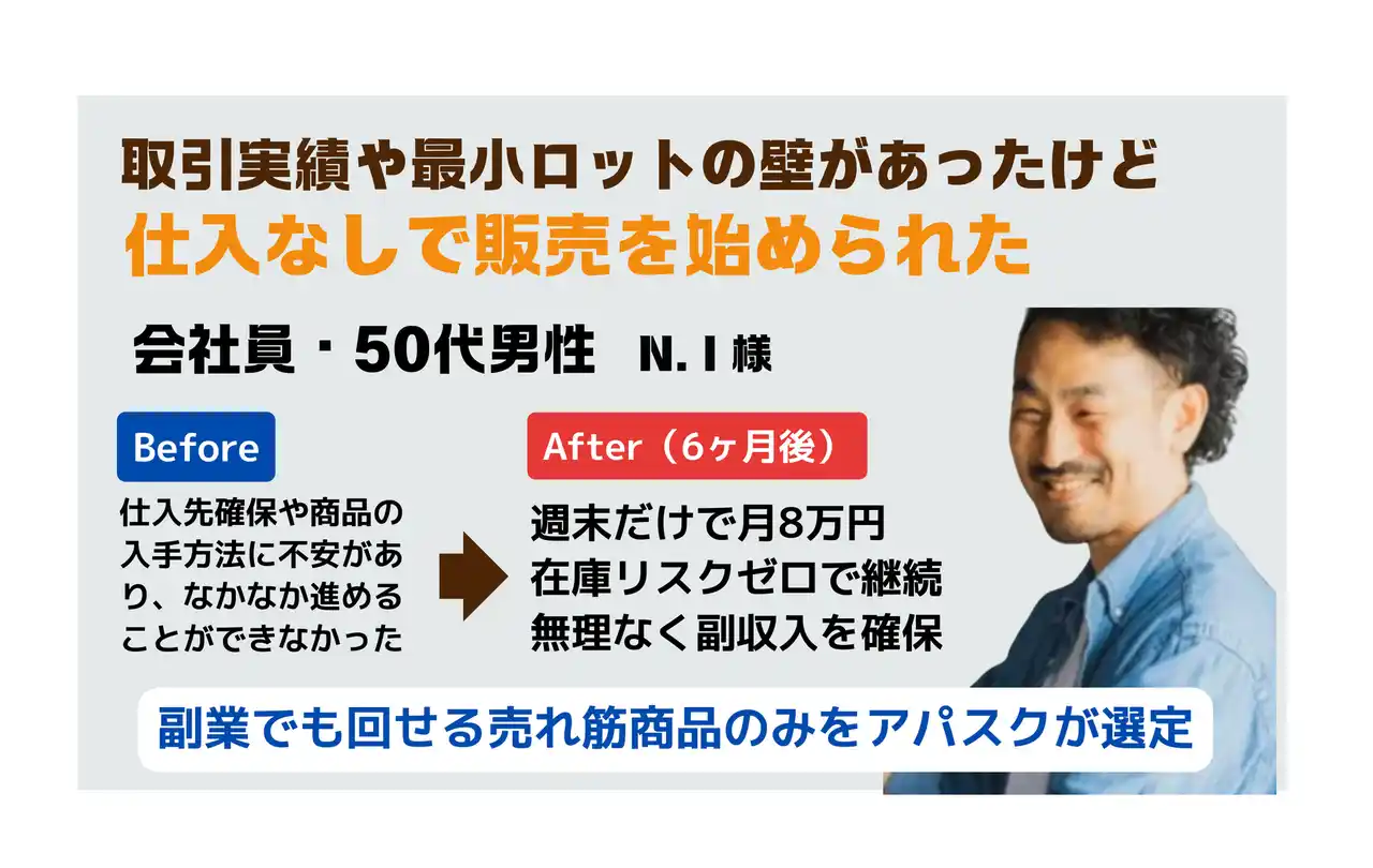 | 在庫ゼロで販売開始:売れ残りは返却可能 | ||||||||||||
