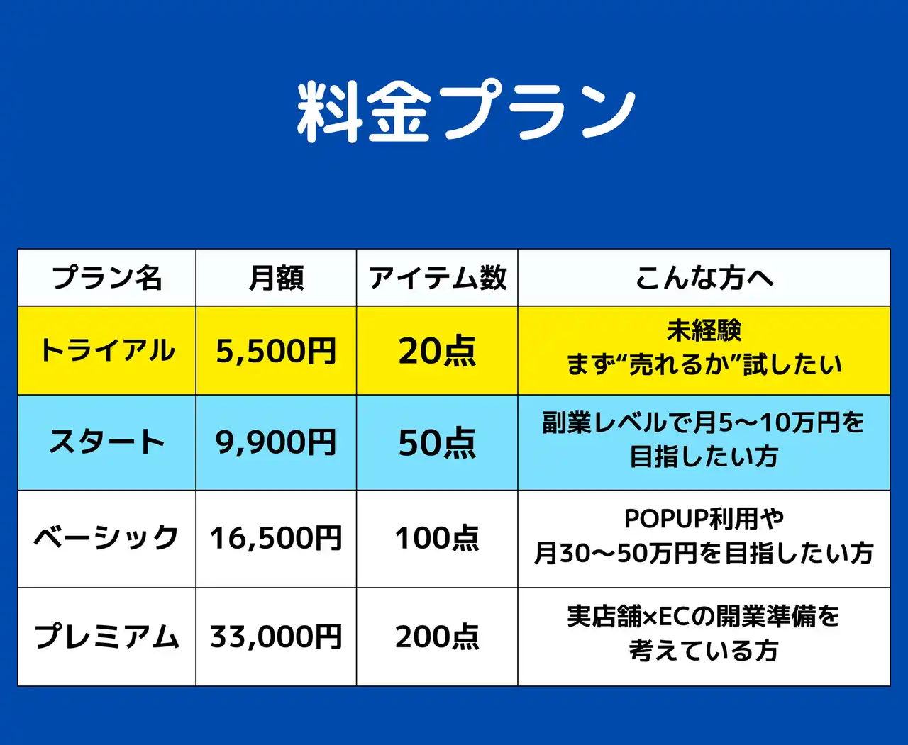 新サービス「アパスク・トライアルプラン」は、仕入れ不要でアパレル販売を始められる“販売可能レンタル”モデルを採用しています。 ユーザーは、毎月20点のアパレル商品をレンタルし、売れた分だけ利益になる仕組みで、売れ残った |