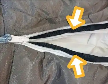 中央に配置されたジッパーにより、寝袋への出入りが自然な動作で行えます。体の向きを変えずに開閉でき、左右どちらの手でも扱いやすい設計。夜中の出入りや、就寝前後のちょっとした動作ももたつきません。 |