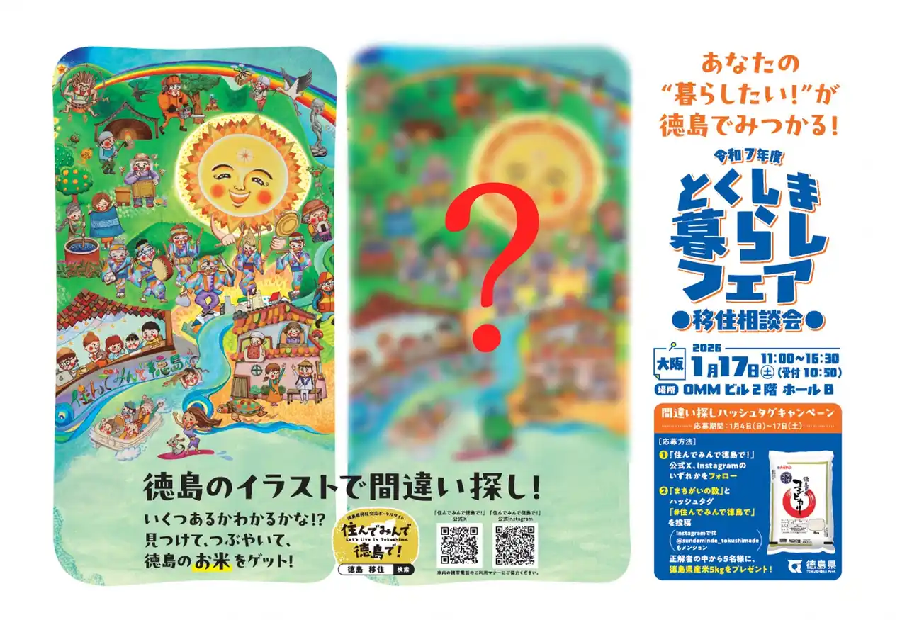まちがいの数をSNSで投稿すると、抽選で5名様に徳島の新米が当たります! |