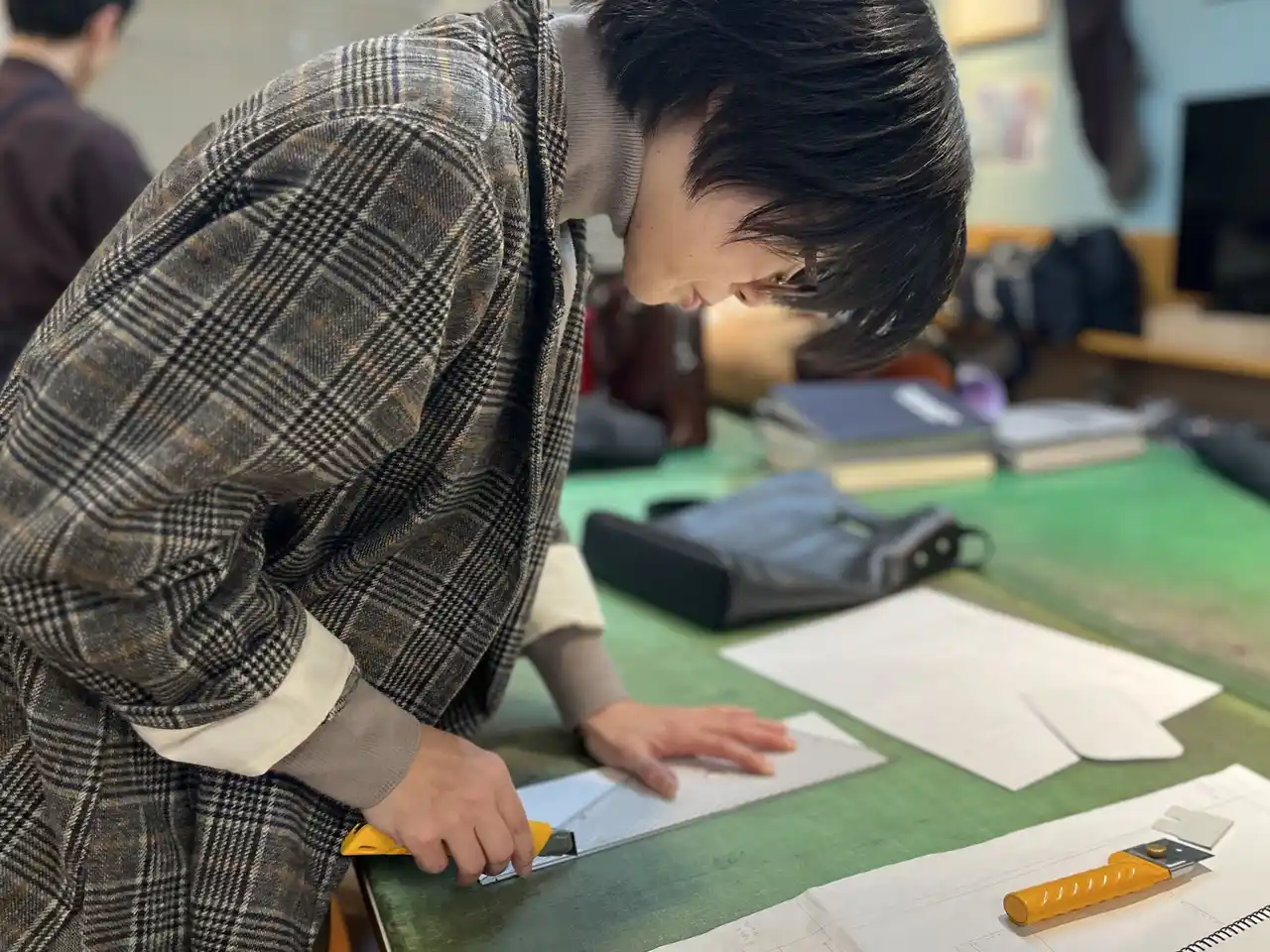 Artisan Schoolは、鞄作りを基礎から学ぶ1年制の専門校です。坂元さんをはじめ多くの生徒は入学時点で鞄の知識やミシンを使う経験がない方がほとんど。モノづくりの情熱だけで1から鞄を学びます。 |