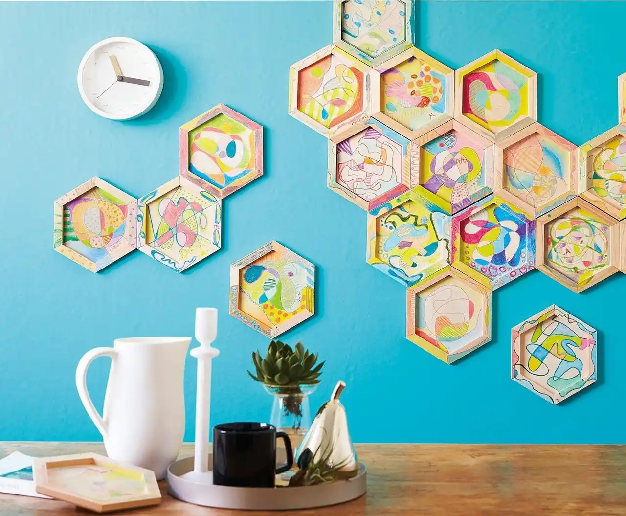 木製の額に500色の色えんぴつを使って、まるで自分が蜂になったような気持ちで色の世界に没頭します。紙とは違う木の描き心地も楽しめます。 |