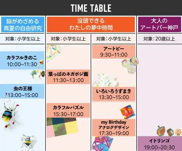 ※大人も楽しめるアートプログラムです。※価格はすべて税込み |