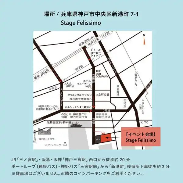 ・イベント総合受付場所/ Stage Felissimo 1F 神戸市中央区新港町7番1号 |