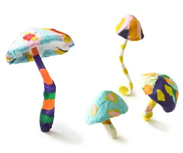 カラフルな和紙と針金を使って、自分だけのアートキノコを作りましょう。磁石を付ければ、スプーンの 上でかわいらしくゆらゆらと伸びる姿も楽しめます。 |