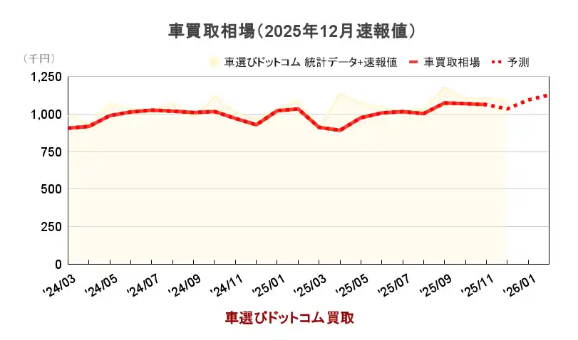 2025年の中古車買取相場は、好調な水準を維持したまま秋の需要期を迎え、9月以降には過去最高値を記録しました。車選びドットコムが集計した独自データによると、年末にかけては例年通り一時的な落ち着きが見られるものの、その後は春先の中古車需要に備えた仕入れ強化の動きが進み、買取相場は再び高水準で推移する可能性が高いと見ています。 |