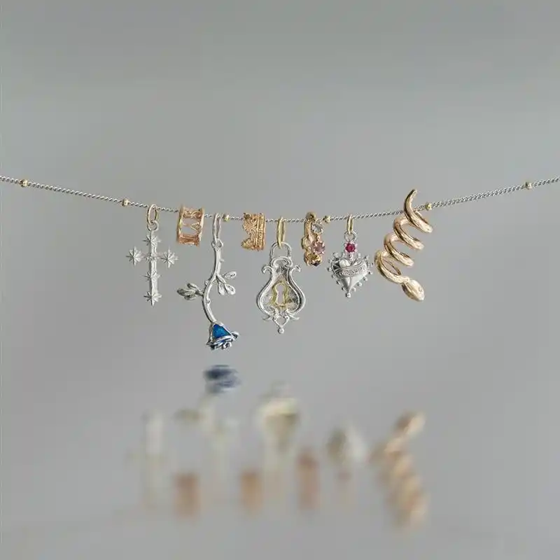 チャーム同士の組み合わせだけでなく、チェーンとの合わせ方次第でもコーディネートの幅がぐっと広がるラインナップ。 |