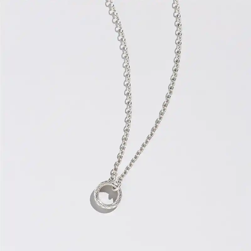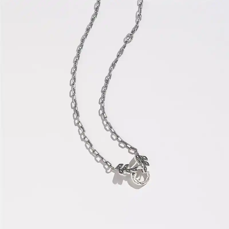 トップのサークルを開閉することで着脱できるネックレスは、どの角度から見ても美しく、アガットで長年愛され続けるロングセラー。今回はさらにチェーン部分にリーフモチーフをあしらったものが登場。古美加工で仕上げることで、ネックレス単体でも存在感のあるデザインに。 |