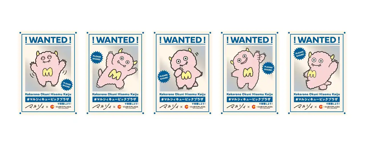 キュービックプラザ新横浜館内やお店の看板やテーブルなど様々なところに「心の奥に潜む怪獣手配書」が出現!?見つけたら「#マルシィキュービックプラザ」を付けて写真をSNSに投稿しよう! |