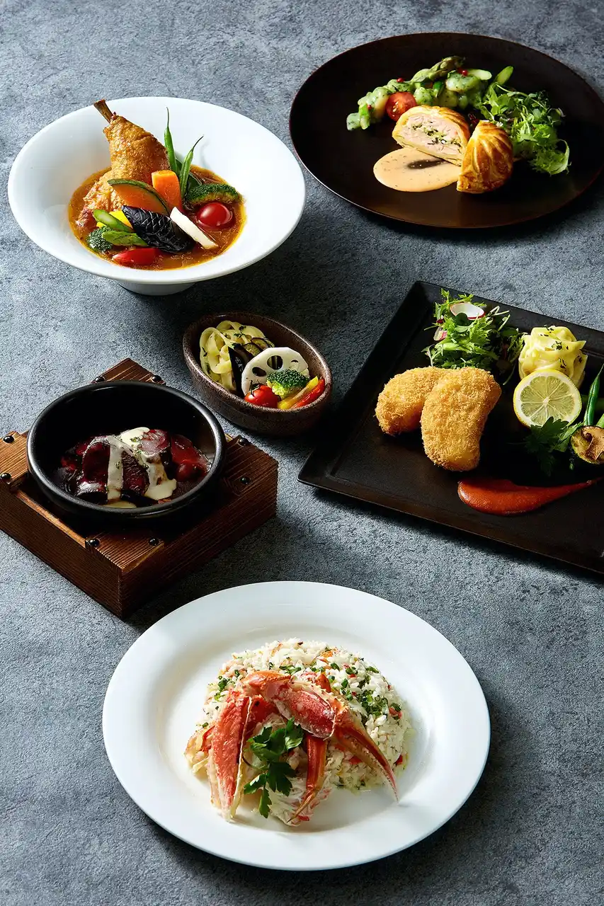 各レストラン、趣向を凝らした特別メニューで、ホテルにいながら“北の美食を巡る旅”をお楽しみいただけます。ランチからディナーまで、幅広いシーンでご利用いただける内容となっており、ご家族でのお食事はもちろん、ご友人との会食や特別な日のご利用にもおすすめです。 |