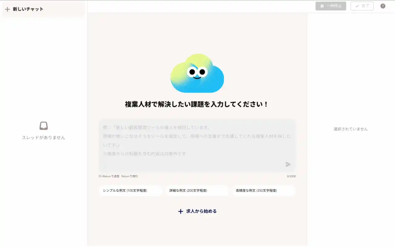 ■求人不要・スカウト不要。課題を入力するだけで複業タレントをAIが提案