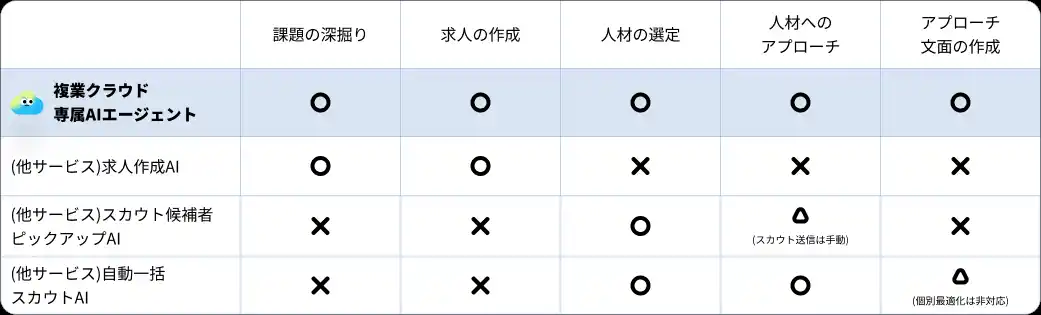 | ■求人不要・スカウト不要。課題を入力するだけで複業タレントをAIが提案 | |||||||||