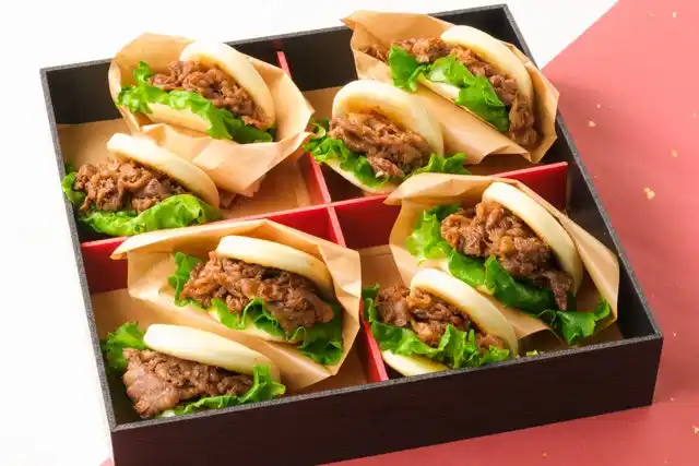 | 人形町今半の黒毛和牛を使用。甘辛いタレに絡めたジューシーな黒毛和牛を挟んだ特製のバーガー。ふわふわしっとりな割りパンが肉汁をキャッチします。 | |||
