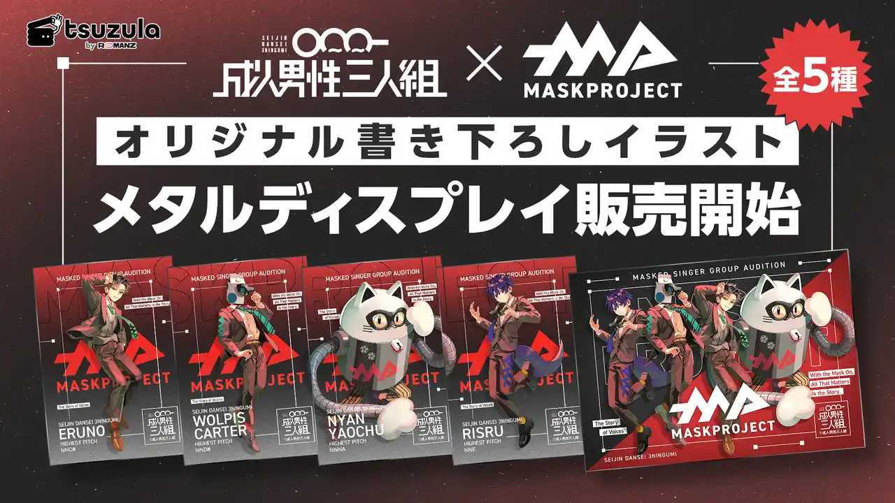「MASK PROJECT」の配信開始に合わせて、「成人男性三人組」と「MASK PROJECT」のコラボレーションによるオリジナルグッズを販売中です! |