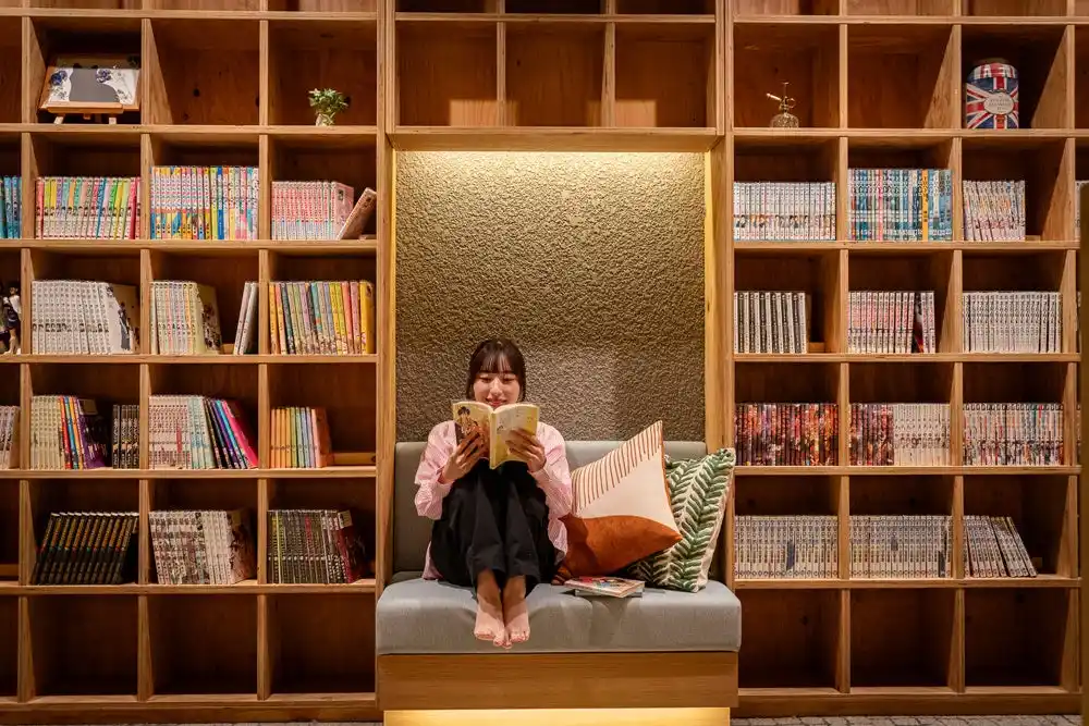 MONEでは、漫画コーナー、フリードリンク、キッズスペース等を備え、幅広い年代のお客様がゆったりとお過ごしいただけます。 |