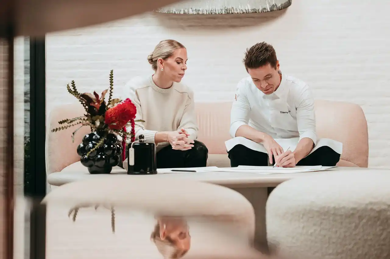 本コレクションは、ベルギー・ダッフェルにあるミシュラン2つ星レストラン 「Nuance(ニュアンス)」 とのコラボレーションから誕生しました。 シェフの ティエリー・テイス と、ホスピタリティを担う妻 ソフィー。ふたりが築いてきた“調和”の哲学が、ノイハウスのメートルショコラティエの感性と重なり合い、ひと粒ごとに物語を奏でるチョコレートが完成しました。 |