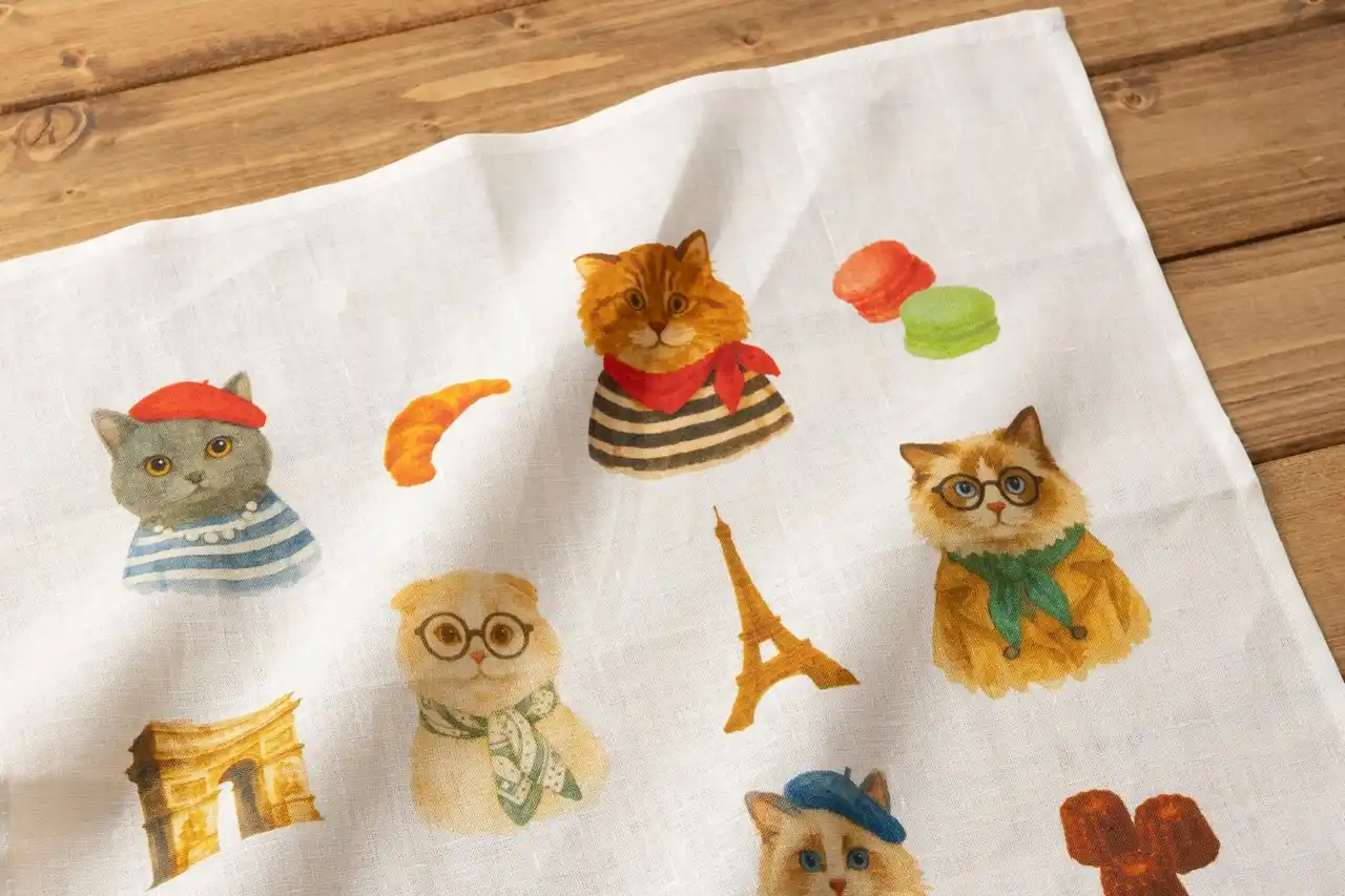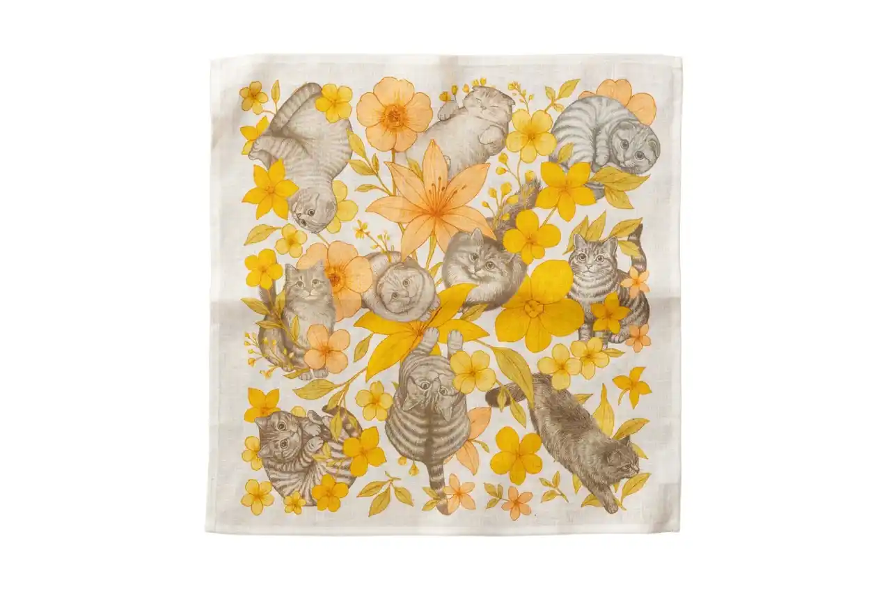 Jubilee 大きめリネン100%ハンカチ キャット&ドッグ 43×43cm |