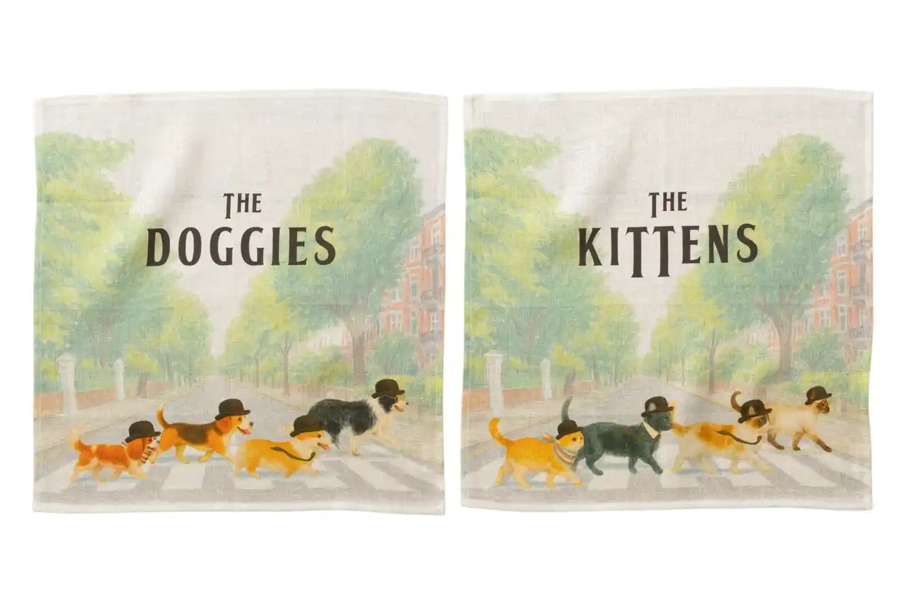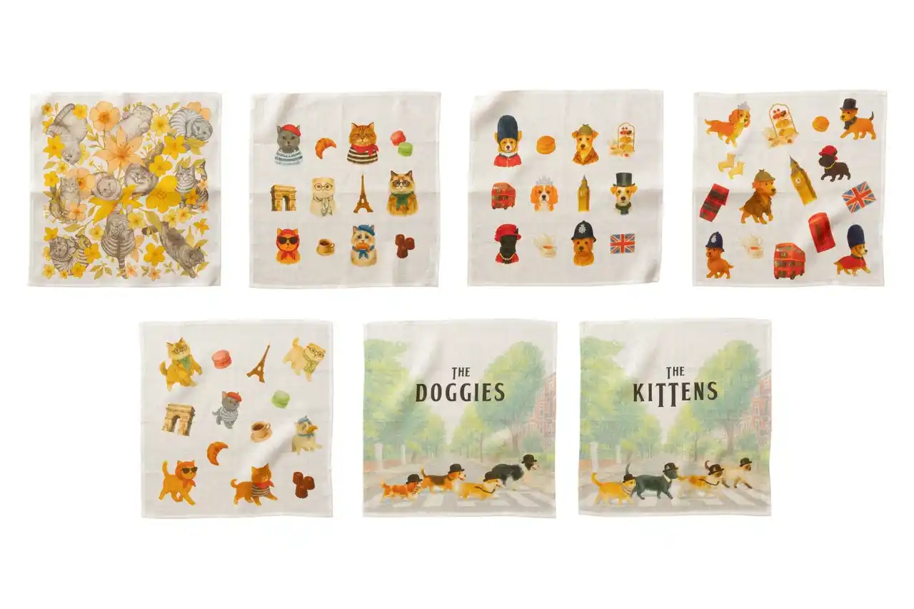 Jubilee リネン100%ハンカチ CATS & DOGS |