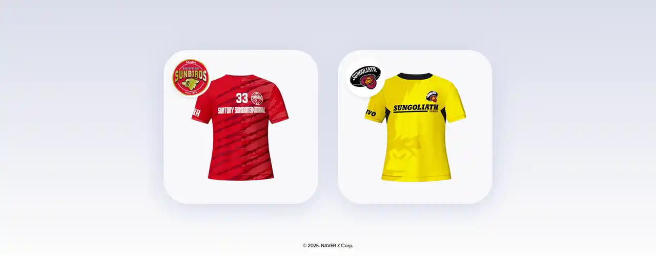 NAVER Zとサントリーは、本コラボレーションを通じて、リアルとバーチャルを融合したハイブリッドなスポーツ体験を提供し、両スポーツチームの魅力を世界中のファンに発信してまいります。 |