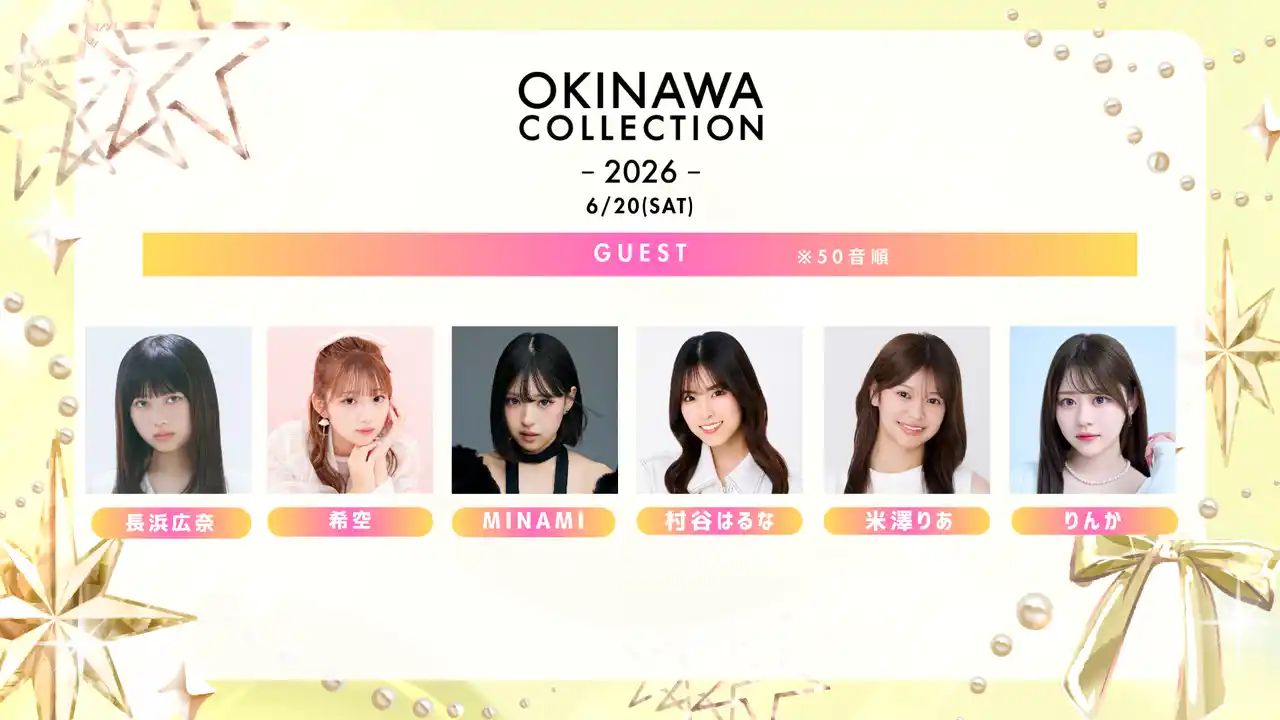 沖縄コレクション実行委員会は、沖縄最大級のガールズファッションフェス『OKINAWA COLLECTION 2026』(略称:オキコレ2026)を、2026年6月20日(土)に沖縄サントリーアリーナにて開催いたします。本日チケット先行一次販売を開始し、第1弾出演者を発表しました。 |
