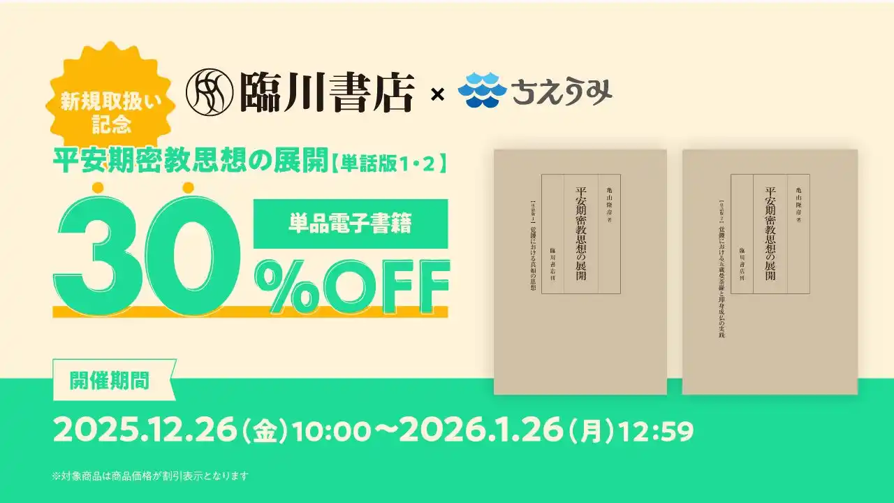 | 株式会社佼成出版社(本社:東京都杉並区、代表取締役:中沢純一)が運営する、電子書店「ちえうみ」は、株式会社臨川書店(本社:京都市左京区、代表取締役:片岡敦)の電子書籍の販売を2025年12月26日(金)よりスタートします。 | |||||||||||||||||||