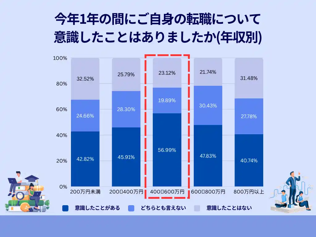 3. 【転職意識層2.】最も転職意識の割合が高いのは「年収400~600万円の層」。 |