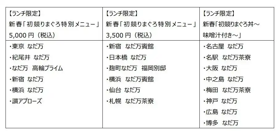 【「なだ万」新春 初競り鮪フェア実施概要】 |