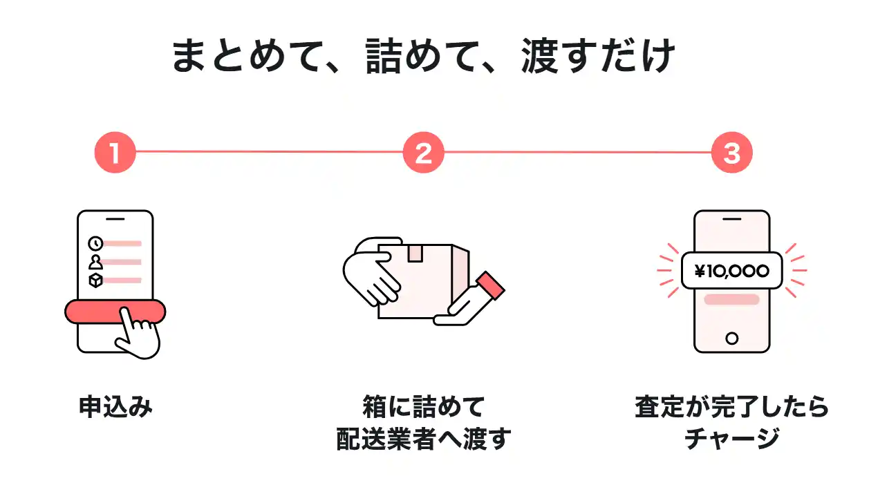 これらを解決する手段の一つとして挙げられるのが、箱に詰めて送るだけの『宅配買取』です。 |