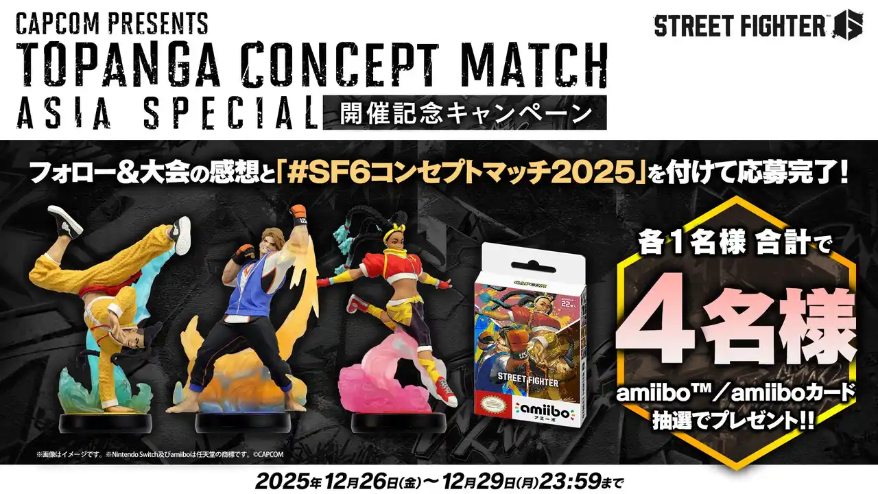 「Capcom presents TOPANGA CONCEPT MATCH Asia Special」の開催を記念して、amiibo(TM)、amiiboカードが抽選で当たるキャンペーンを実施! |