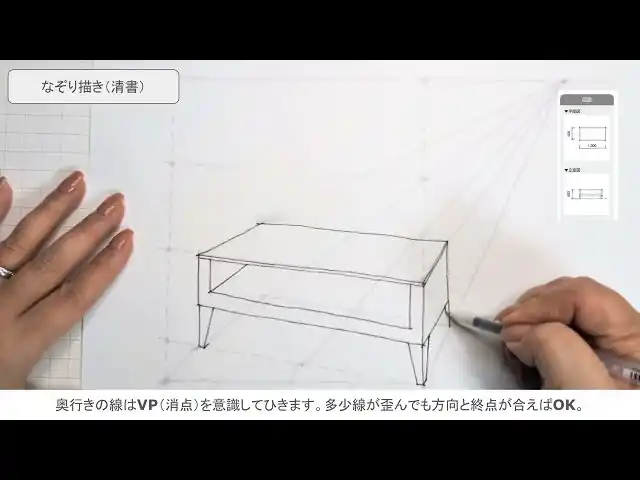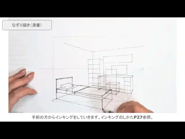 パース線を引く著者の手の動きまで見ることで、読者の皆さんの理解が一層深まります。