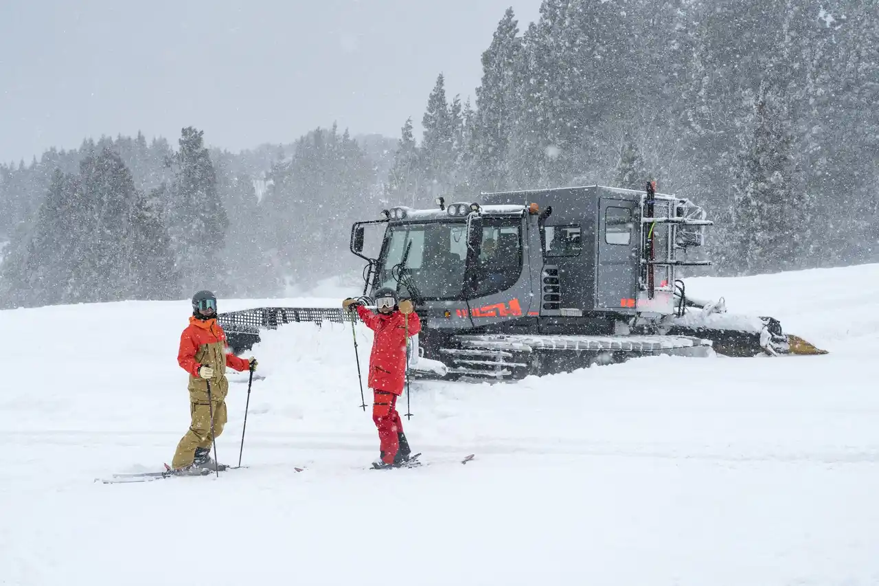 この冬から「スノーキャットツアー」を開催。ゲレンデ整備用の雪上車に乗り、リフト・ゴンドラ運行前の静寂に包まれたエリアへアクセス。朝日を浴びて輝く飯士山の山並みや、樹々に積もる雪が織りなす幻想的な景観など、早朝ならではの大自然の魅力を間近に感じられる特別な体験です。目的地では、まだ誰も滑っていない新雪のフィールドが広がり、極上のパウダーを思い切り味わえるのも本ツアーならでは。通常のゲレンデ滑走とは異なる贅沢な時間を提供し、上質な雪山体験を求めるスキーヤー・スノーボーダーにとって、今シーズン注目のプログラムとなっています。 |