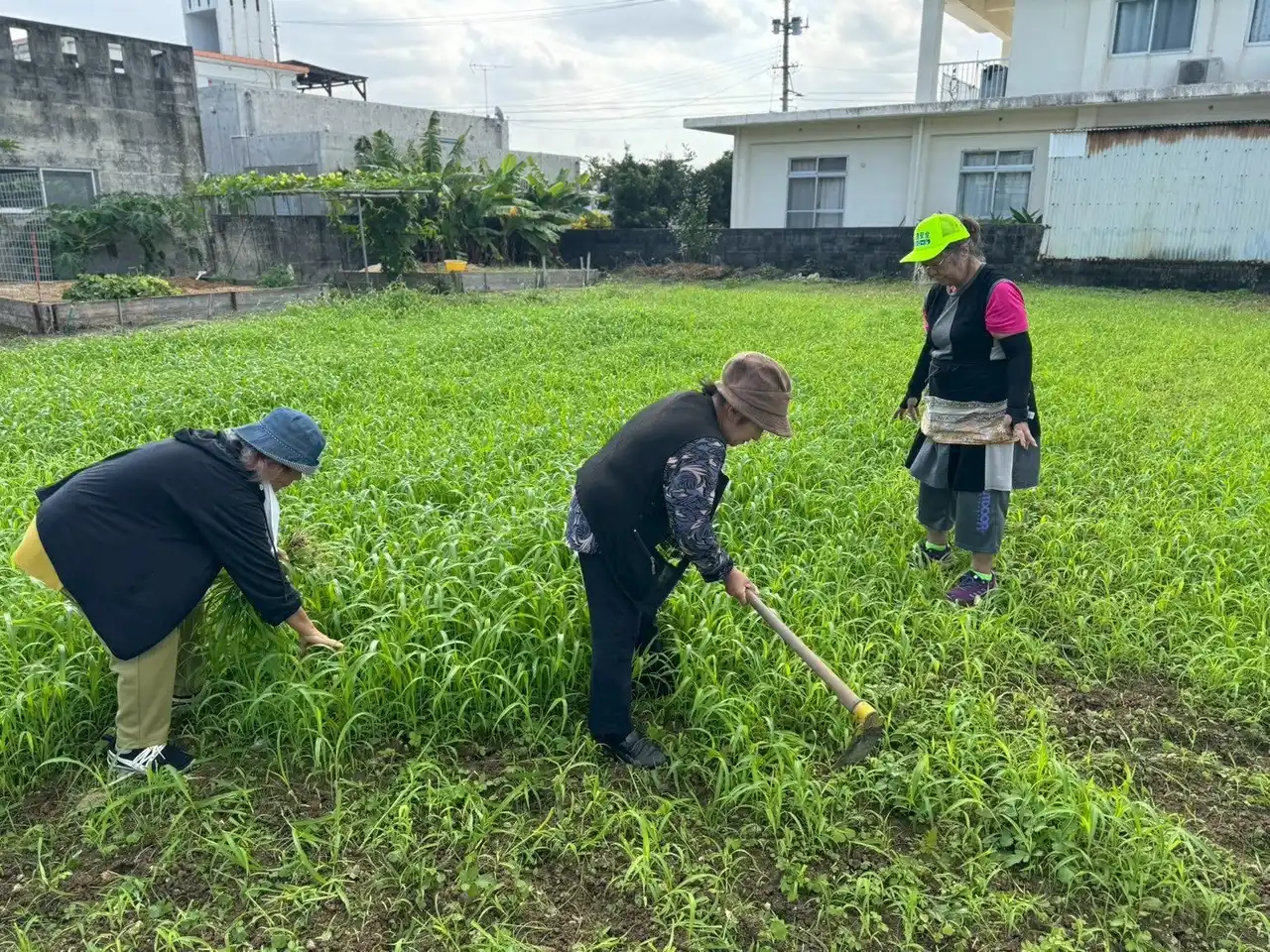 平安座島ではかつて、麦がとても大切にされていました。1970年に海中道路が開通する以前、限られた土地で育てられた麦は、命をつなぐ貴重な作物であり、地域を支える「通貨」のような存在でもありました。しかし少子高齢化や畑の放棄が進み、島の麦づくりは徐々に姿を消していきました。 |