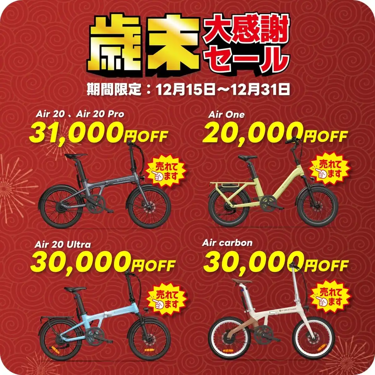 今回の年末キャンペーンは、 「電動アシスト自転車を検討していたが、価格で迷っていた方」 「新年に向けて移動手段をアップデートしたい方」 にとって、非常にお得な機会となります。 |