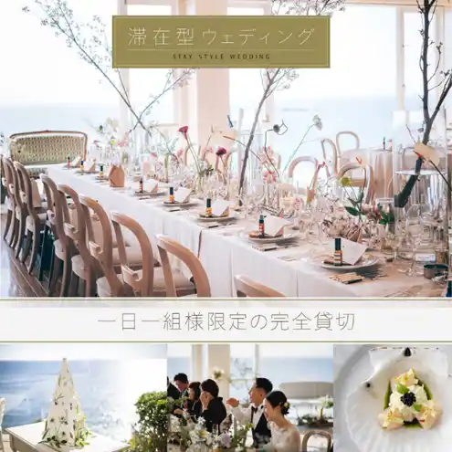 1日1組でホテル別邸を貸切る、別荘スタイルのウエディングをお届けいたします。時間も自由に設定出来る為、青い海からサンセットまでお楽しみいただけます。多彩なウエディングプランをご用意しており、美食と上質の滞在型ウェディング、少人数のアットホームなウエディングから、 最大80名の着席パーティまで対応いたします。期間限定のお得なプランやおふたりに合わせたオリジナルの披露宴をご準備しています。また、フォトウェディングプランもございますので、ロケーションフォトとしてご活用いただくことも可能です。 |